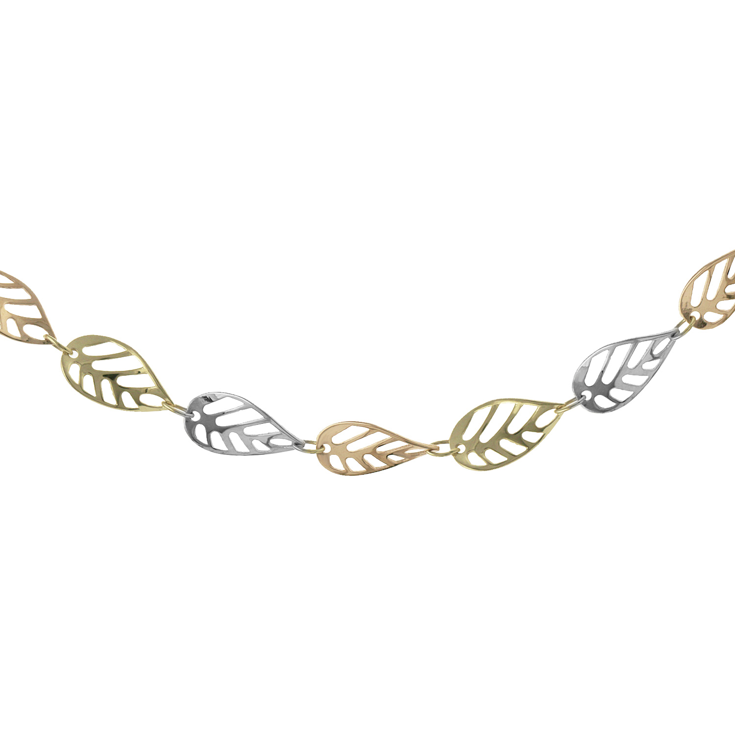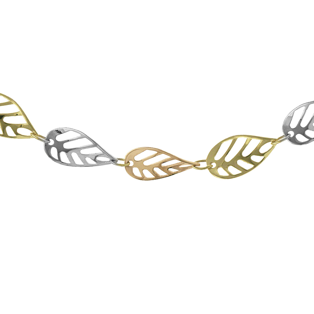 9ct Multicoloured Gold Leaf Chain. The width of this chain is approximately 7.5mm.