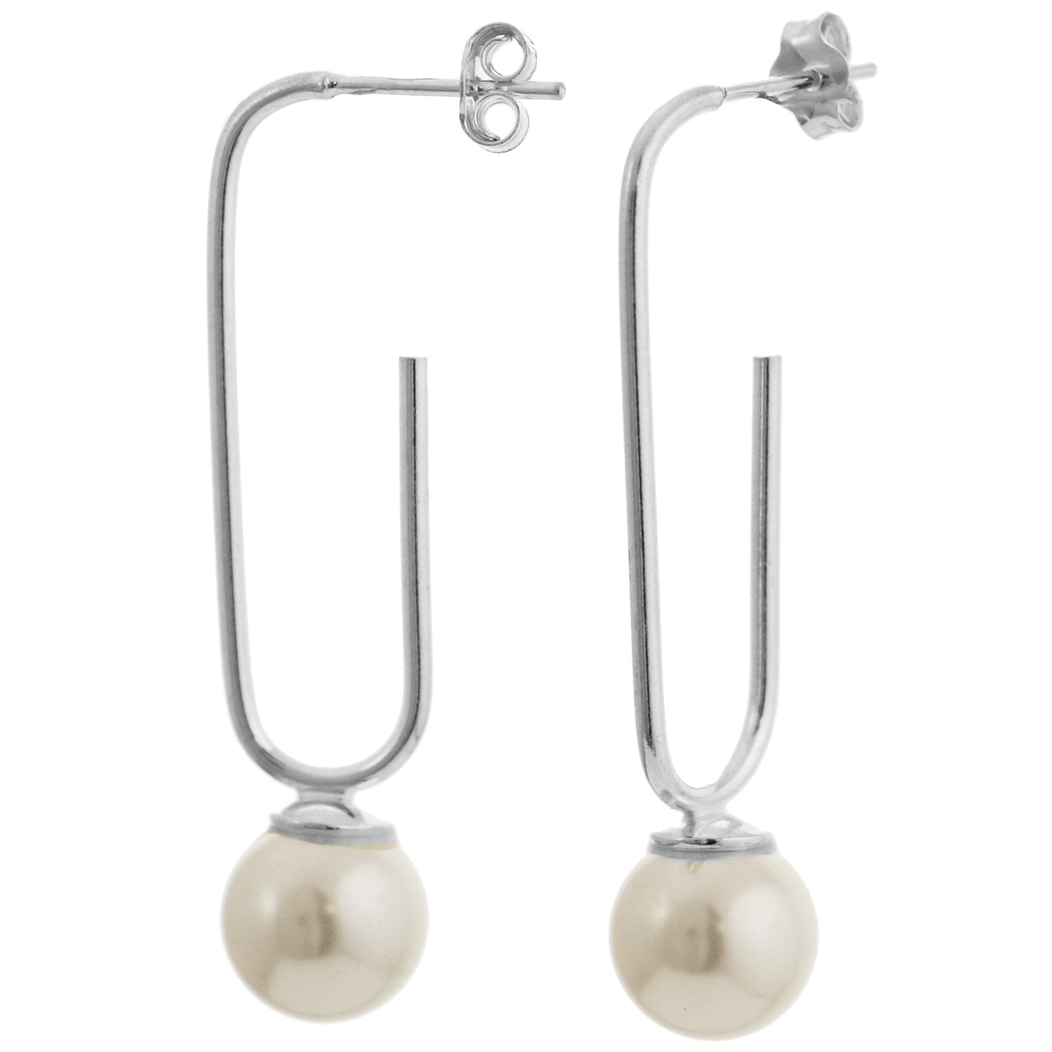 Sterling Silver Rectangular Pearl Hoop Stud Earrings.