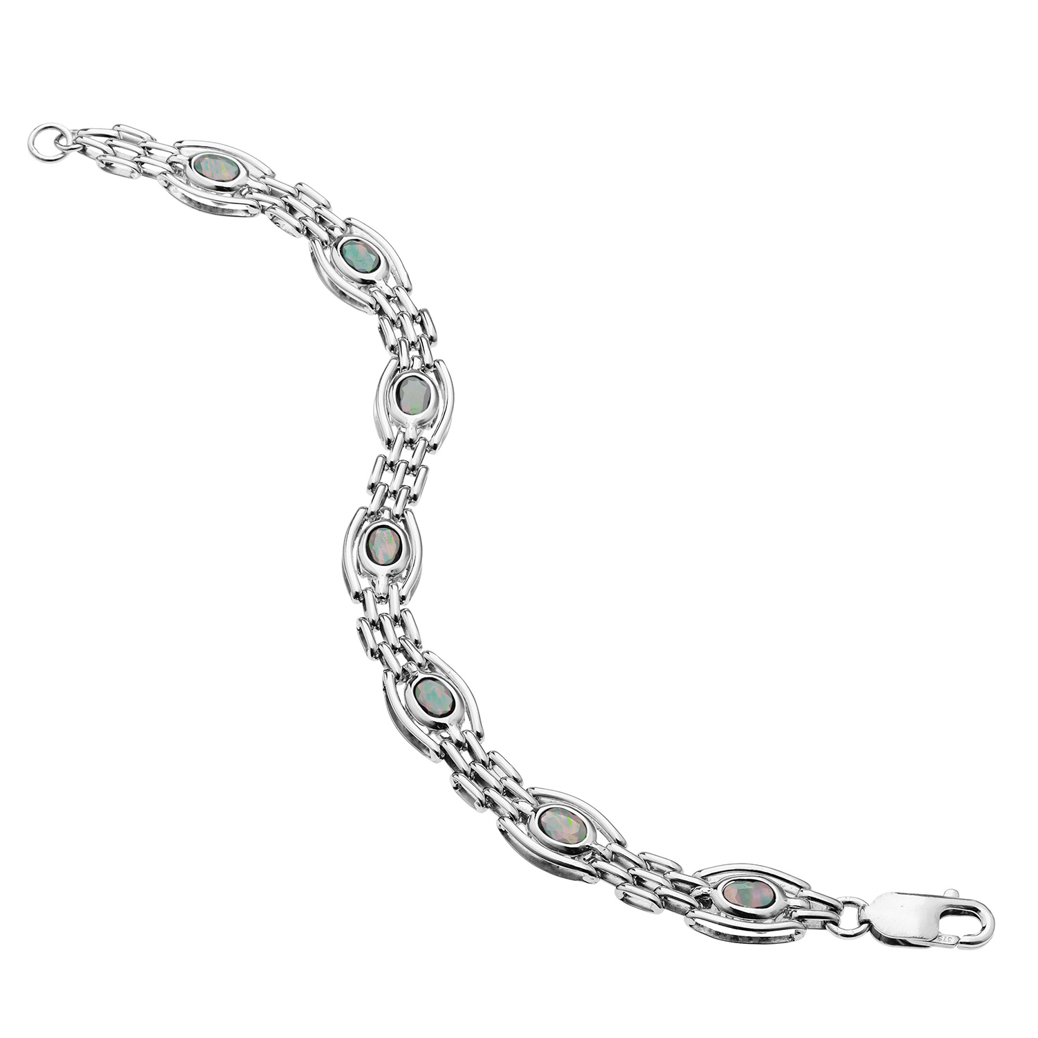 Sterling Silver Handmade Gate Bracelet with Multiple Stone Options. The width of the chain is approximately 10mm.