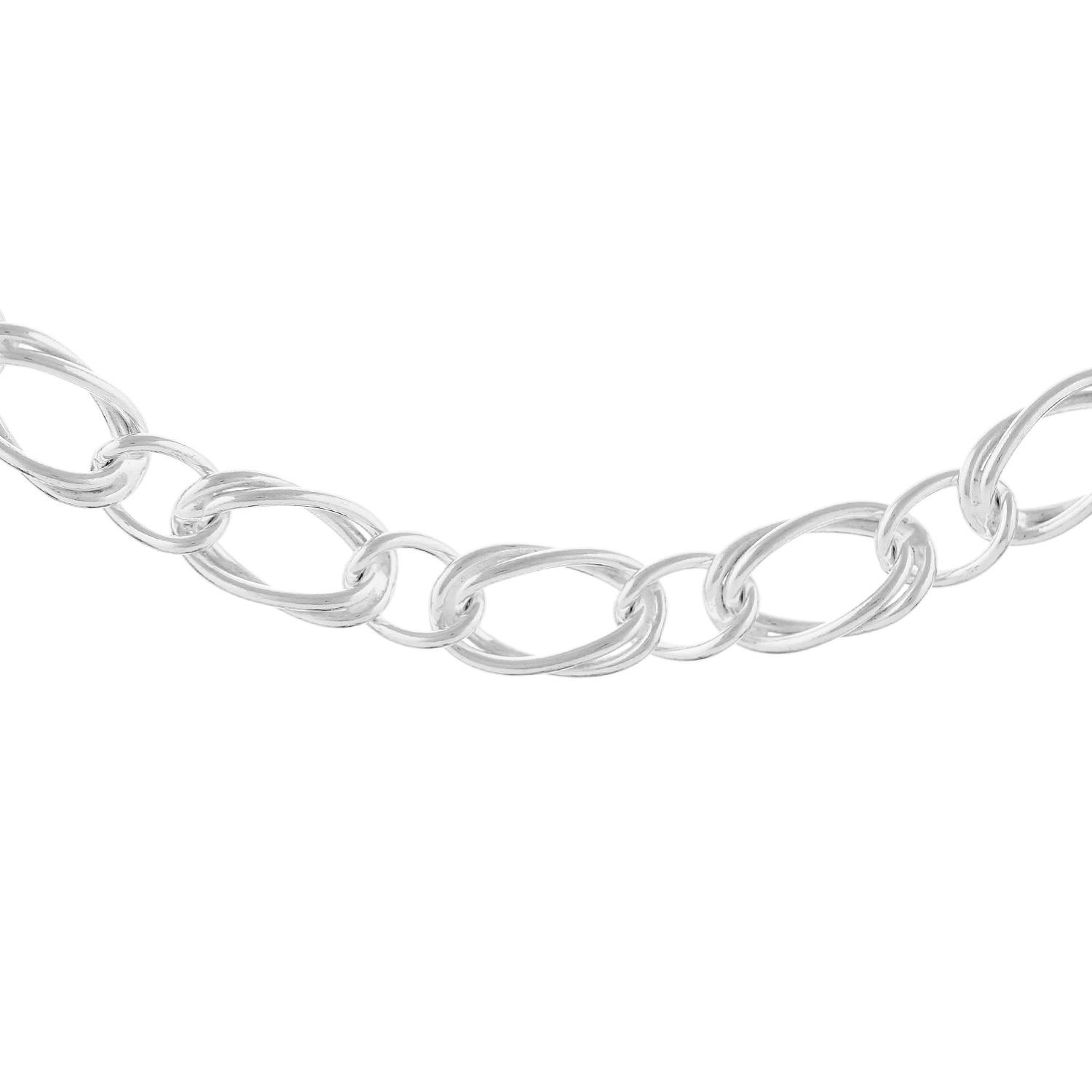 Sterling Silver Handmade Double Link Curb Chain. The width of the chain is approximately 8mm.